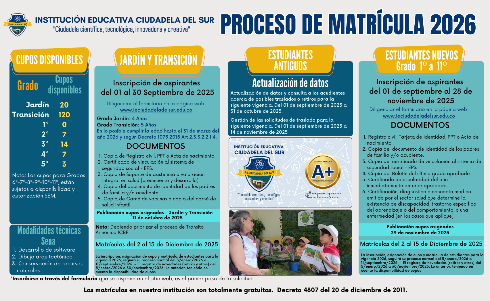 Para comunicarse con la Institución Educativa Ciudadela del Sur a través de los siguientes medios.
